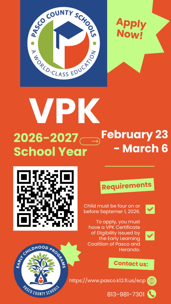 • Families must have a VPK Certificate of Eligibility from the Early Learning Coalition of Pasco and Hernando.